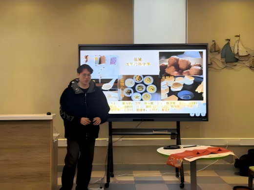 林心怡、洪文轩、周宇、李枫分别分享了各自家乡独特的春节习俗。既有赣南客家擂茶制作的温情场景——邻里相聚,一碗擂茶,凝聚的是客家人深厚的情感联结;也有盐城质朴生动的年谣:“廿三,糖瓜粘;廿四,掸尘期;廿五,做豆腐……”一道“盐城八大碗”、一张“米饭饼”。通过他们的分享,让大家体会到了天南海北不同的春节民俗文化。