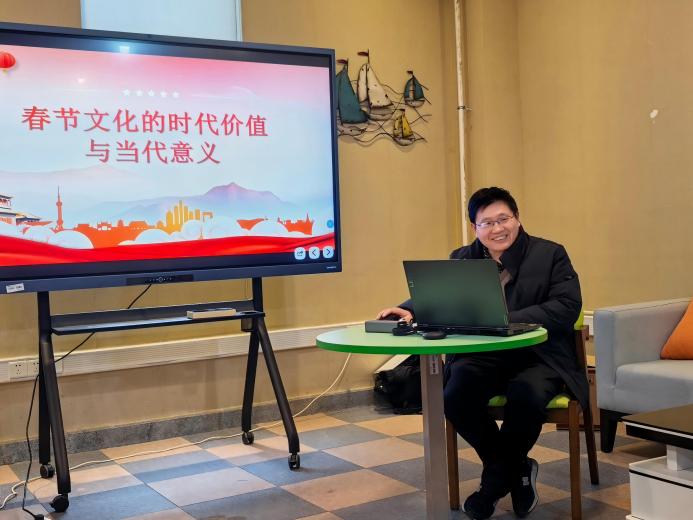 活动伊始,校关工委副秘书长、学院退休党支部书记、原学院党委书记徐群祥老师带来题为《春节文化的时代价值与当代意义》的微党课。