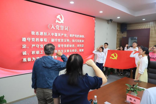 最后,沈磊作为领誓人,带领师生党员重温入党誓词。